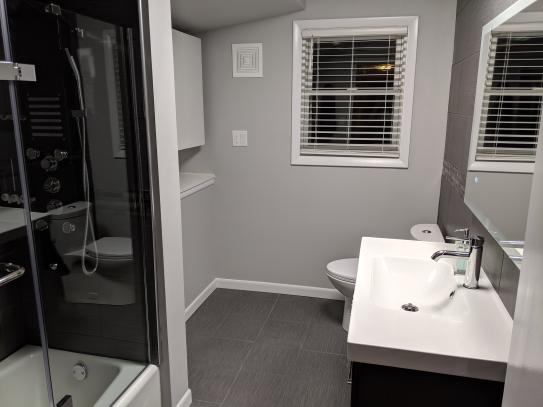 Porcelain floor and wall tile combines a glazed top with a medium sheen and subtle gray black variations in tone to create a perfect look for a variety of decorative schemes.